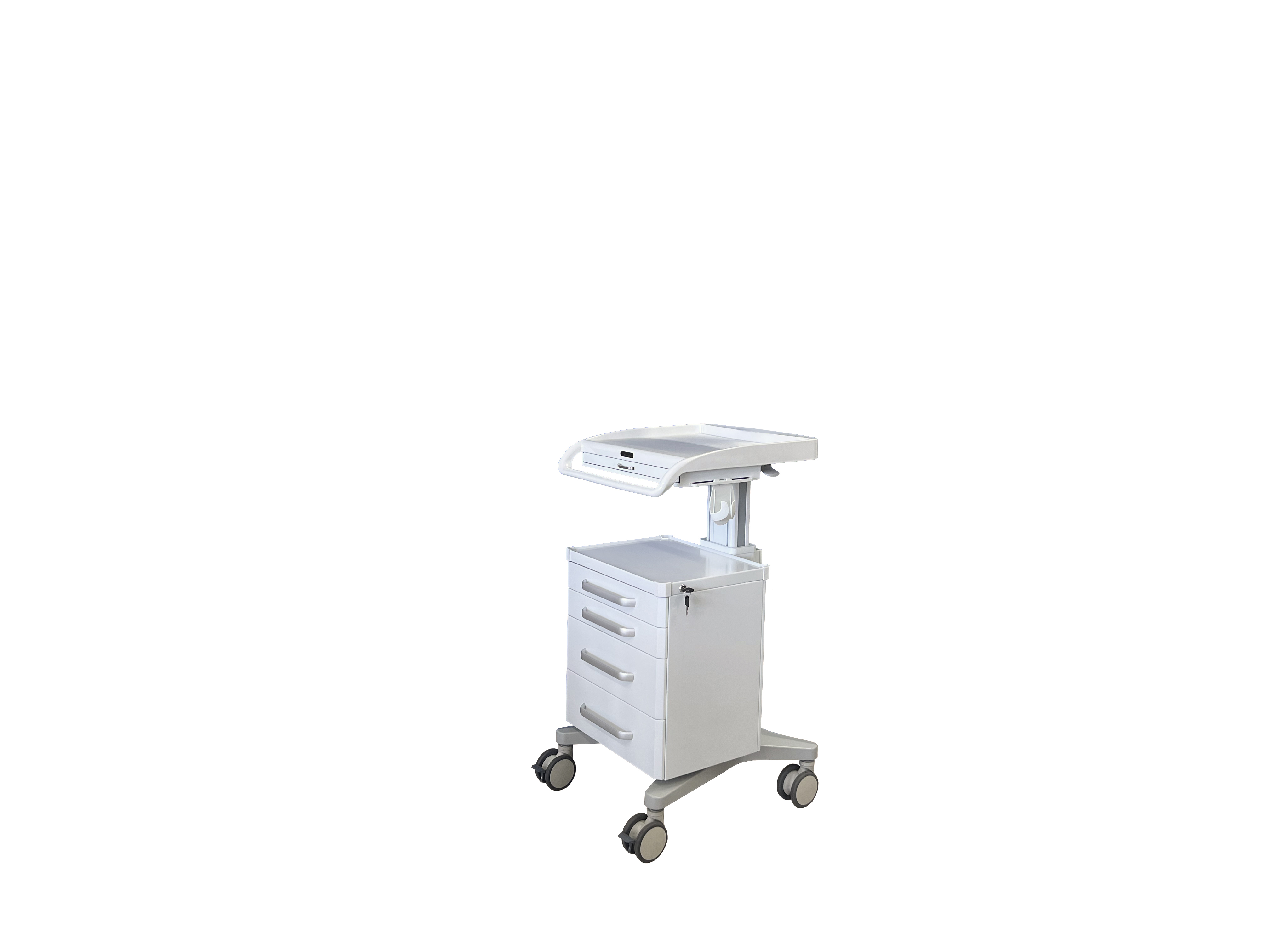 此款推车是我公司自主研发的多功能医用护理推车,可以扩展为医院信息化推车,接入软件后可以轻松对接医院的各种系统,实现医院信息化的整合,对病人的个人信息、诊疗信息以及医护人员的职责更清晰,同时又能实现移动护理、移动送药、移动查房、移动抢救、移动探视等,做到真正的可移动综合医护工作站。全车模块化设计,可随意增减配置,自行调节层高,可个性化定制,更适合人体功能学所需,实现了真正意义上的一车多用。可加装显示器支架,摄像头支架,扫描枪挂架,内镜挂架,杂物置物篮,分类垃圾桶,利器盒,洗手液消毒液支架等,可定制箱体大小及抽屉层数,可将线路隐藏在立柱内,搭载静音万向医用脚轮并配有制动装置,灵活推拉,轻松锁定。推车采用冷轧钢板、ABS工程塑料及高强度铝合金型材组装而成,美观大方,轻巧耐用。所有表面均经过特殊打磨处理及喷塑,无菌、防滑、耐腐、易清洁,是医护人员的贴心小助手。