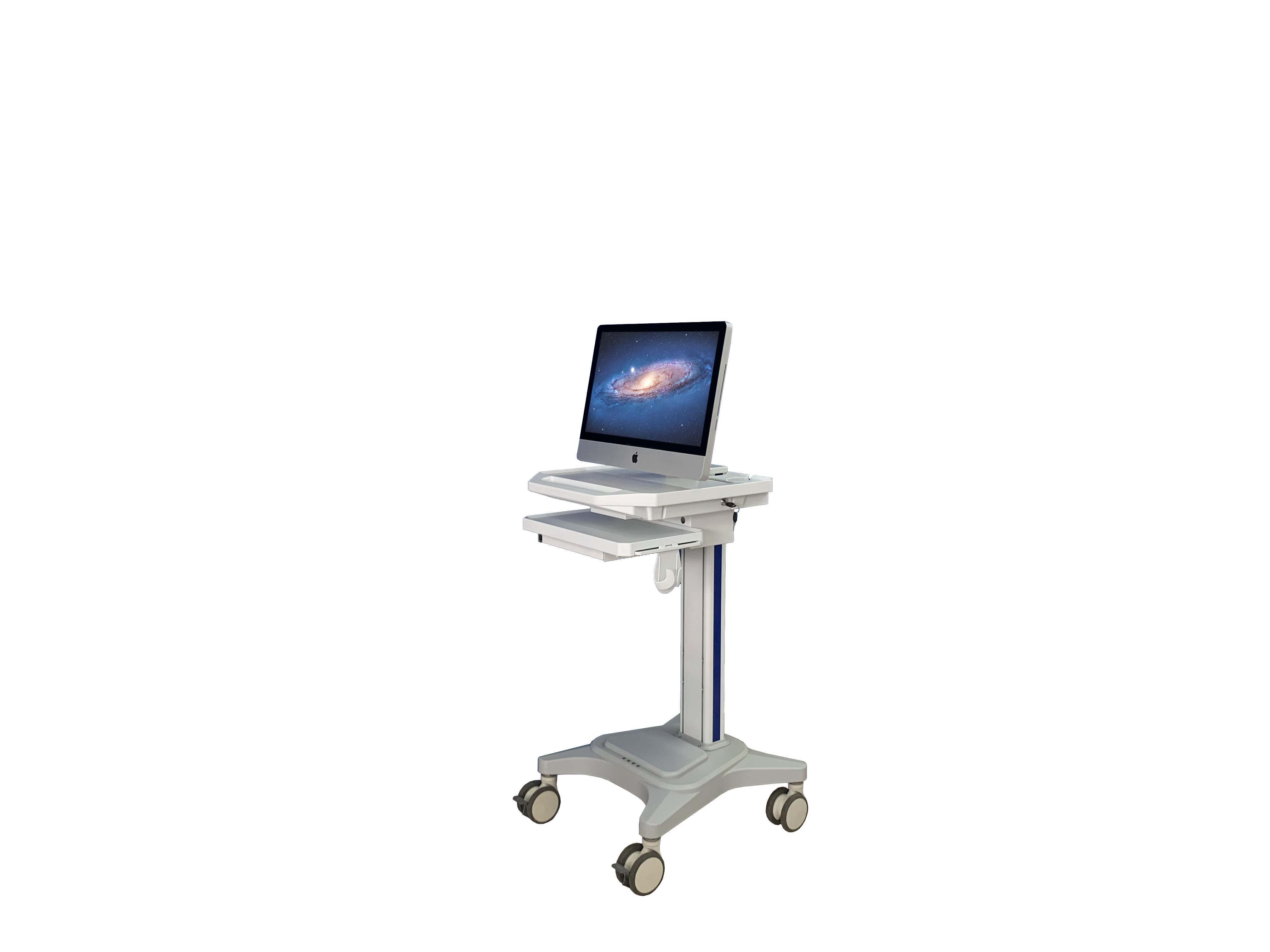 此款推车是我公司自主研发的多功能电脑推车,可以扩展为笔记本推车,一体机推车,电脑主机推车,电脑打印机推车,平板电脑推车等;此款推车的出现很好的解决电脑设备和附属配件集成和移动的问题,从而达到灵活办公,美观整齐的效果;推车内可以加装锂电池为电脑设备供电,可以加装显示器挂臂实现360度旋转悬停,还可以加装双屏或者三屏支架实现多屏互联;高品质静音脚轮,万向刹车,多方向移动无障碍;储物篮筐,小抽屉,打印机托盘,杂物盒等方便放置随机配件;推车采用冷轧钢板、ABS工程塑料及高强度铝合金型材组装而成。外形设计简洁大气、结构稳定材质耐用、更适合人体功能学所需。可以广泛应用在医疗,工业,教育,互联网等各种领域,通用性强。