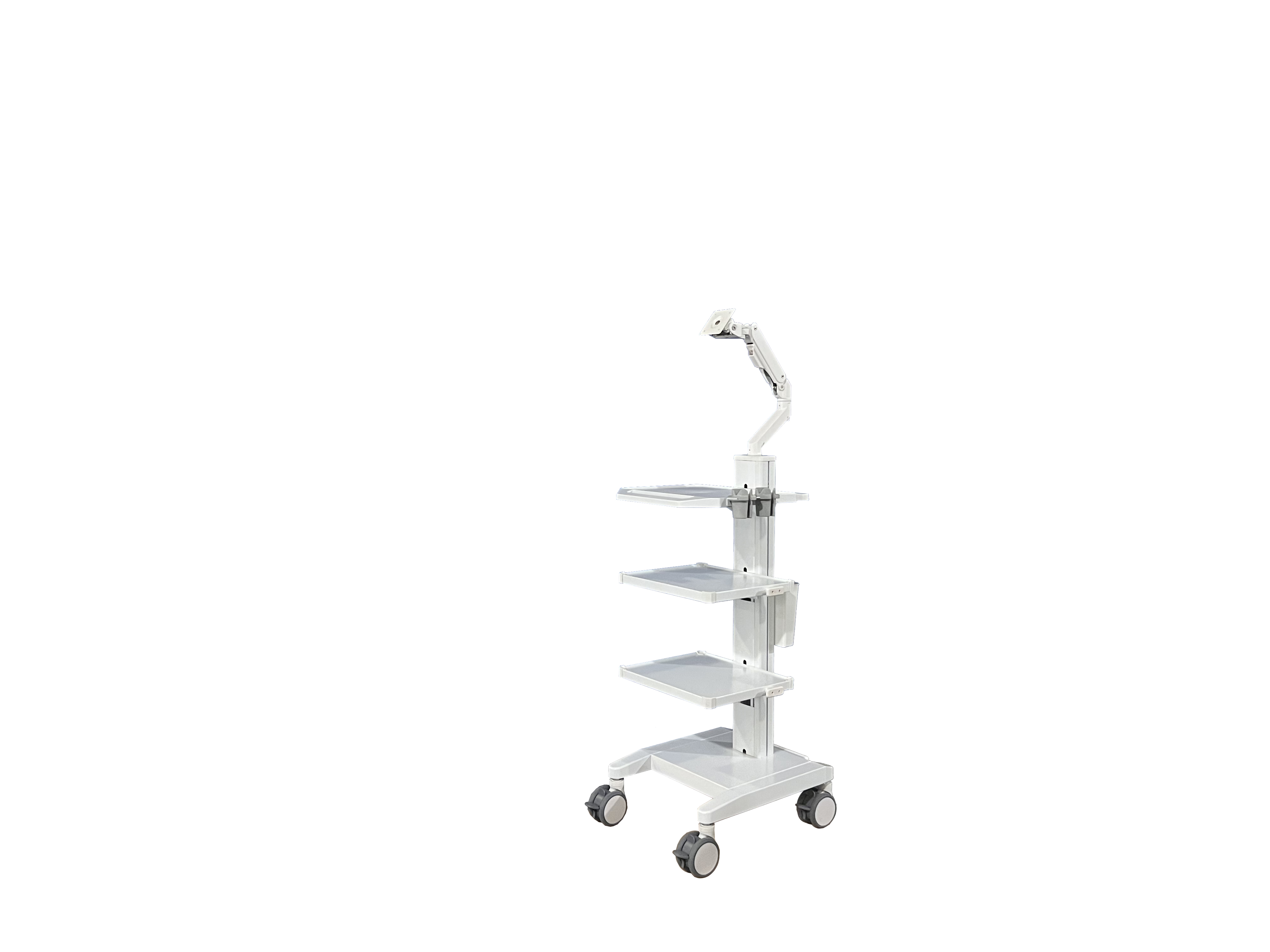 此款推车是我公司自主研发的多功能内窥镜推车,高度有1.1米, 1.15米,1.2米,1.25米, 1.35米,1.4米可选,可以实现不同功能与数量的设备集成,满足不同身高的医护人员进行操作;可悬挂三个32寸显示器同时工作,也可以支持55寸的大屏或电视。可适用于腹腔镜设备,宫腔镜设备,胃肠镜设备,耳鼻喉镜设备,气管镜设备,关节镜设备,胆道镜设备,泌尿设备,动物内窥镜设备,医美设备,手术室设备等,通用性强。全车模块化设计,可随意增减配置,自行调节层高,更适合人体功能学所需。可根据不同的软、硬管镜加装不同的挂架和配件,也可个性化定制:比如颜色、层板厚度、层板大小等,真正做到让医护人员提高效率得心应手的同时也很好的节省了医院空间。推车采用高强度铝合金和冷制钢板加工而成,纯金属材质稳定性更好,触感质感更强且坚固耐用。所有金属表面均经过特殊打磨处理及喷塑,抗菌、防滑、耐腐、易清洁。搭载静音万向医用脚轮并配有制动装置,灵活推拉,轻松锁定。