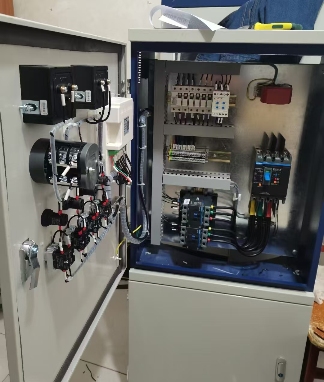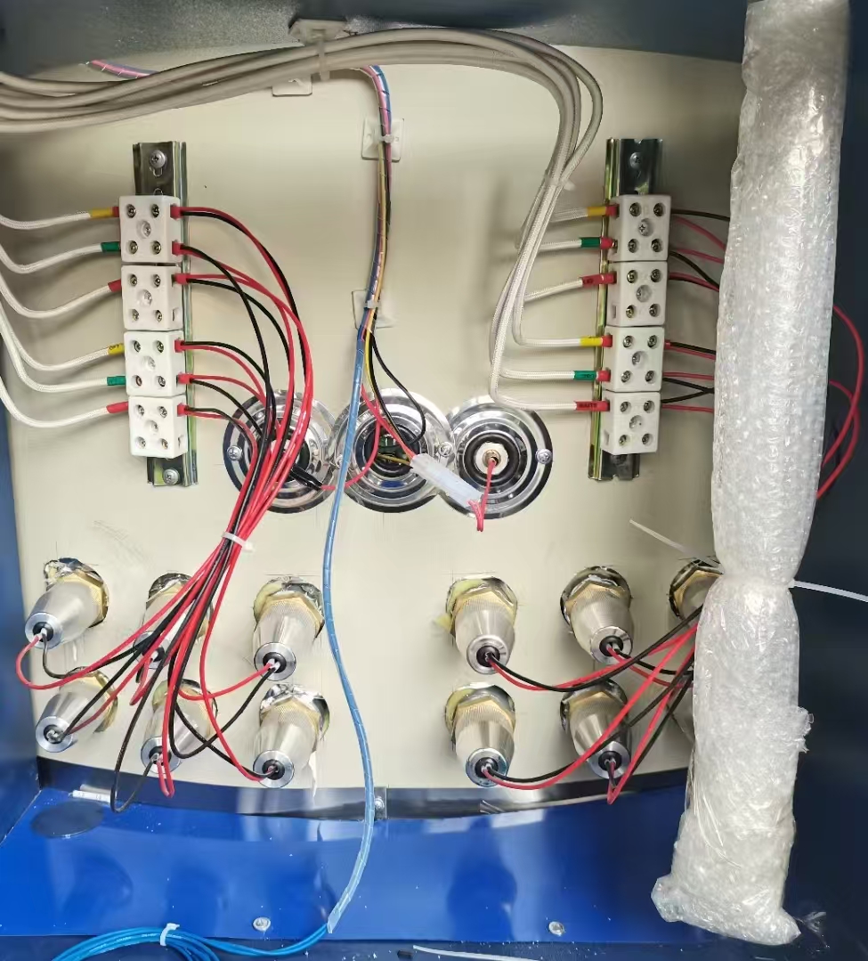 2、电路设计上将负载电路与控制电路分离,使得启停加热对智能控制器干扰小;负载电路由石英管加热器、接线端子、交流接触器、漏电保护器/断路器、电流表、电压表、加热指示灯等组成;进水电路采用继电器控制,实现自动加水和停水;