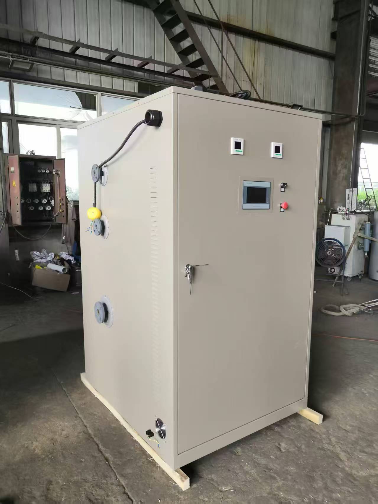 2、智能化控制,具有水位感知,自动水泵运转进水与停止,自动加热与停止,产出高温饱和蒸汽,人为操作少,使用简单方便;