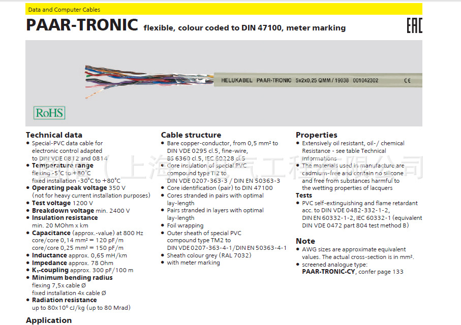 | HELUKABEL—和柔电缆,是德国大型设计、制造电线电缆厂商,在以德国为中心的生产厂广泛使用现代化的先进生产技术和工艺。HELUKABEL广泛用于所有工业领域,有超过33,000多种各类型号和规格的电缆储备,可以使我们迅速满足您的需求。我们还能根据您的需求单独设计您需要的特种电缆。和柔可提供全球标准的电缆产品,更符合中国CCC电缆标准。 | |