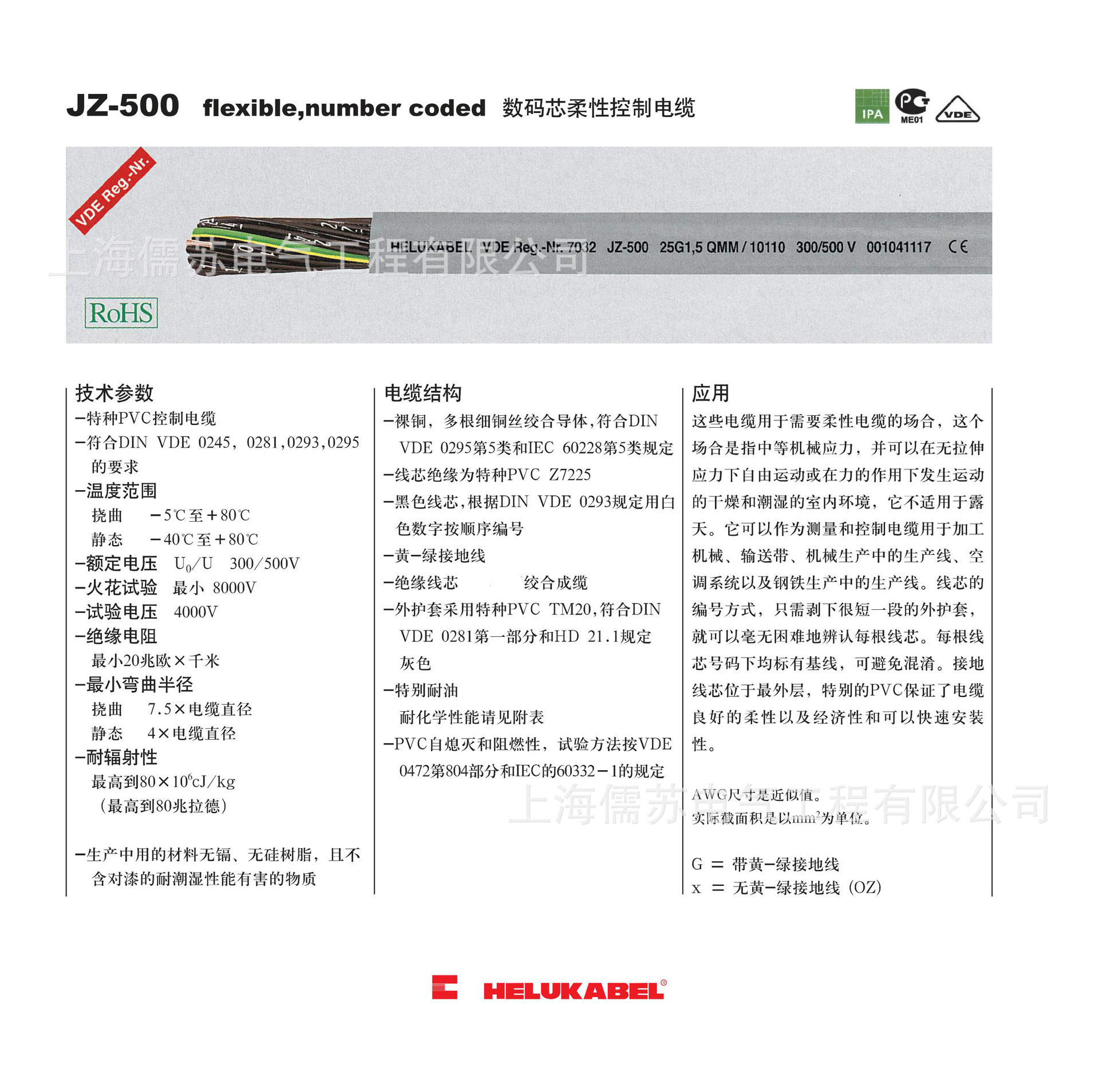 和柔电缆 HELUKABEL 德国进口 控制电缆 HELUKABEL JZ-500