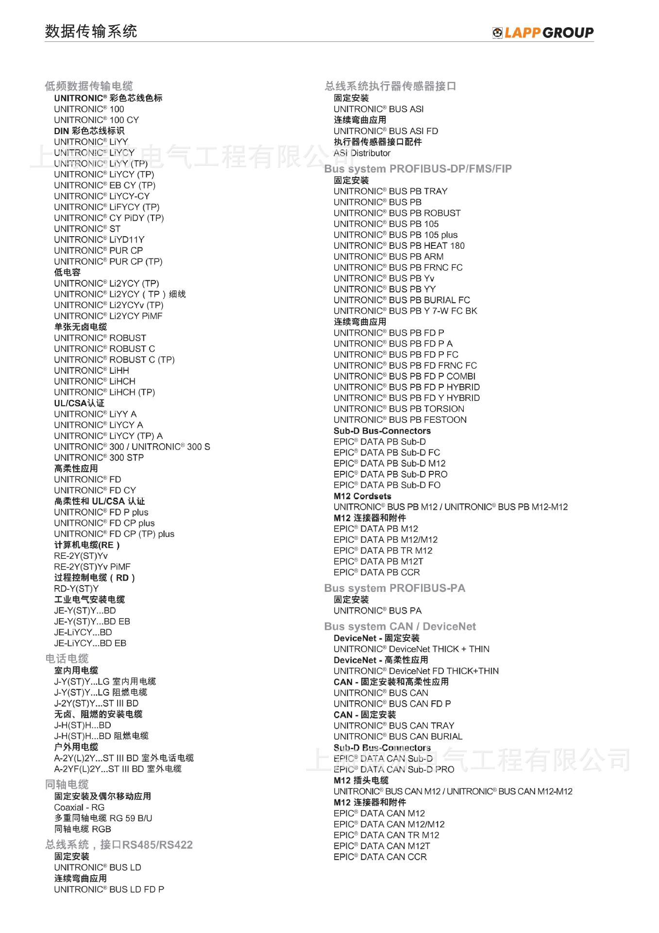 由于LAPP电缆种类繁多,如果需要确认技术、规格、货期等,详情可联系我们!