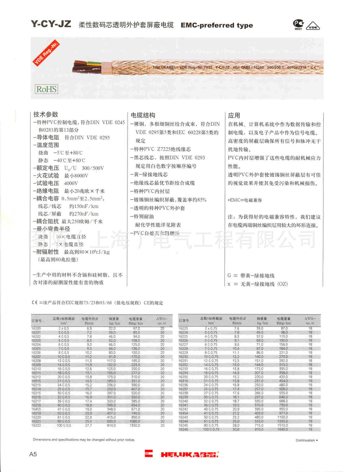 和柔电缆 德国进口电缆 HELUKABEL 电缆Y-CY-JZ