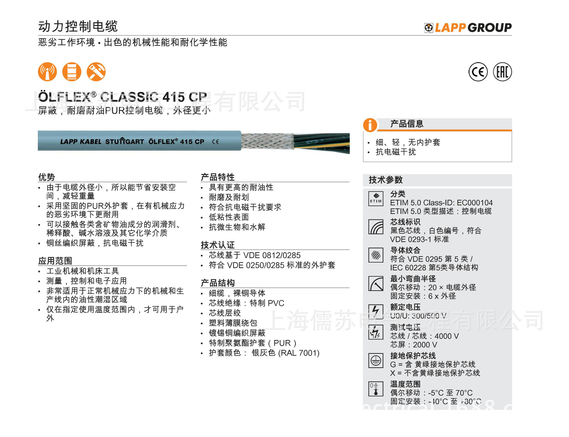 德国LAPP缆普屏蔽PUR控制电缆 LAPPKABEL 415CP