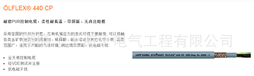 德国缆普LAPPKABEL耐磨耐油无卤阻燃带屏蔽电缆olflex 440cp