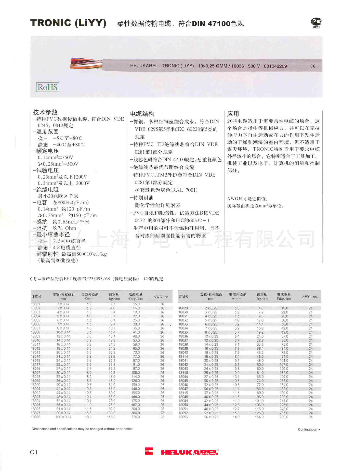 由于HELU电缆种类繁多,如果需要确认技术、规格、货期等,请联系我们!