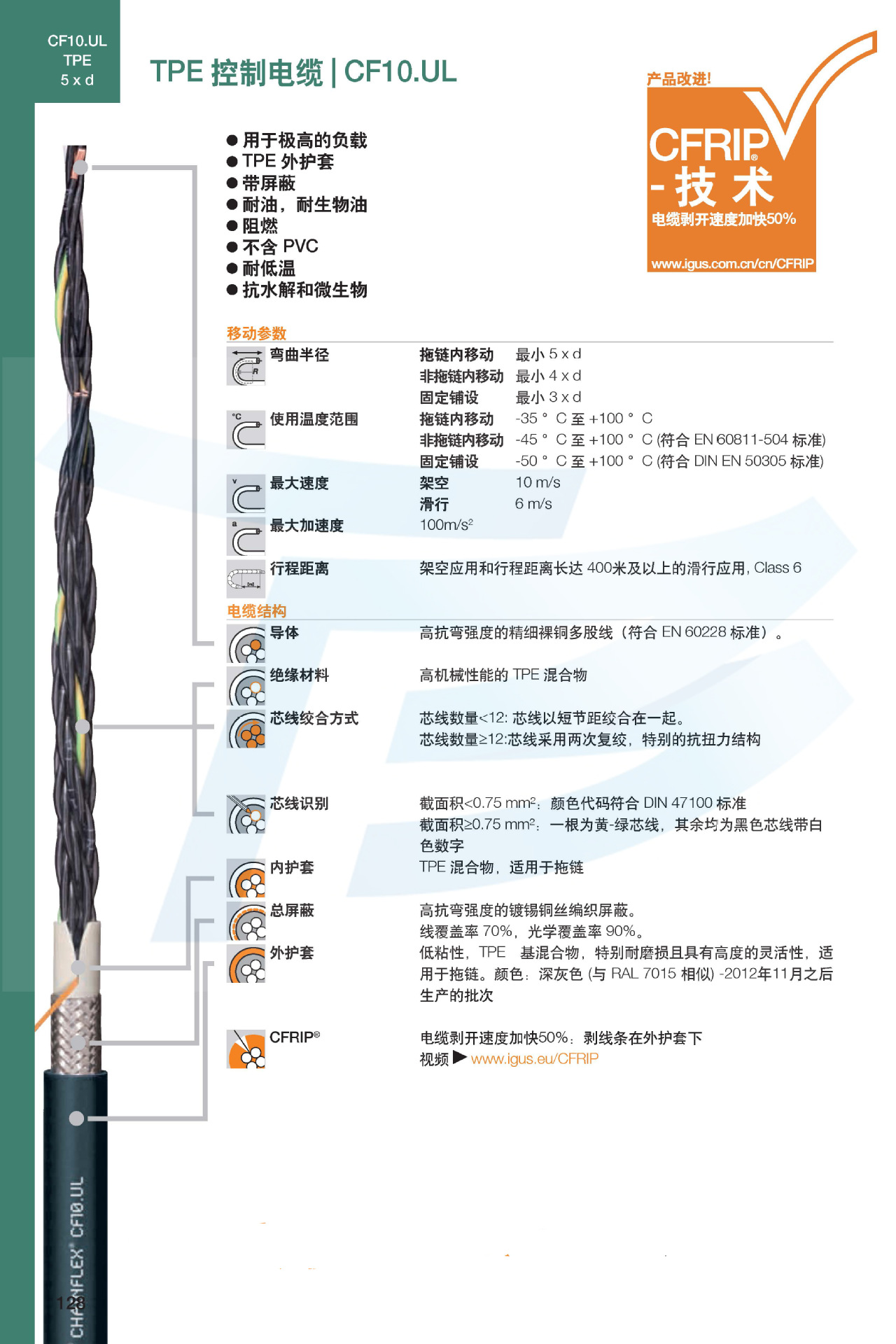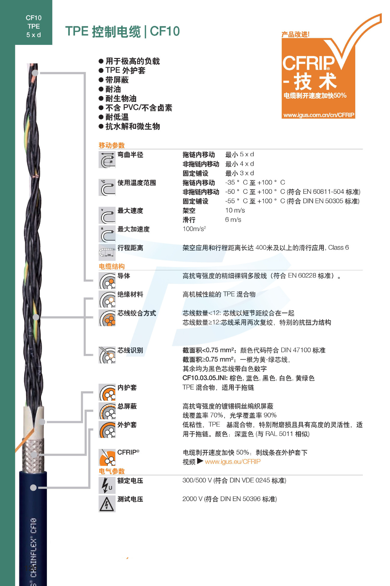 德国易格斯电缆,IGUS电缆,高负载TPE外护套,带屏蔽拖链电缆,CF10