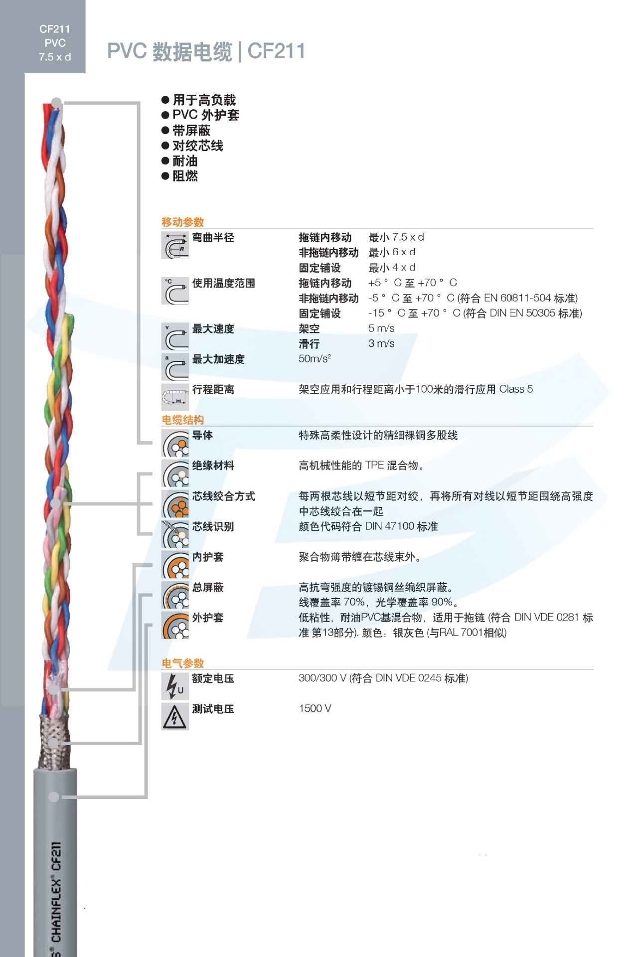 易格斯电缆,IGUS电缆,测量/耐弯折,德国进口数据电缆CF211