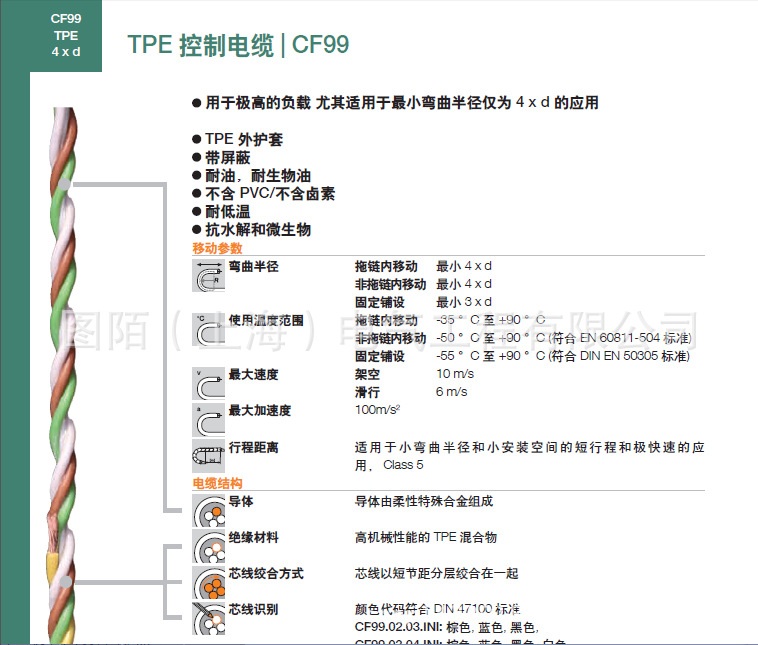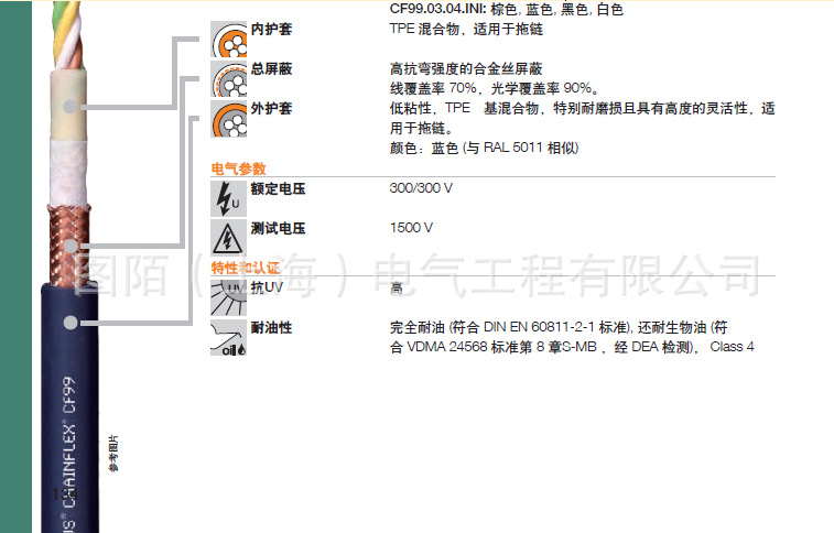 极高负载带屏蔽 耐油拖链电缆,CF99: