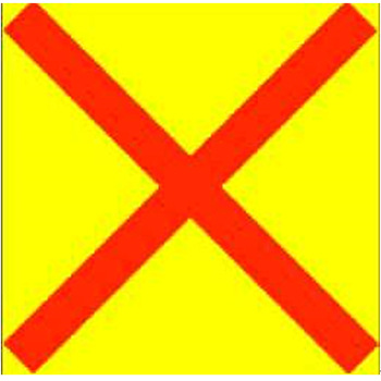 位于禁止桥梁通航孔的上方,禁止船只通行。贴膜:黄底红标。定红光