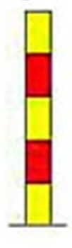 位于桥梁的桥墩,标示桥墩位置,行船避开行驶。贴膜:黄红相间。灯光黄色,连续快闪或者连续甚快闪。