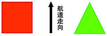 设置于单向桥梁通航孔上方,允许单向行驶。贴膜:白底绿标。灯质:绿色定光