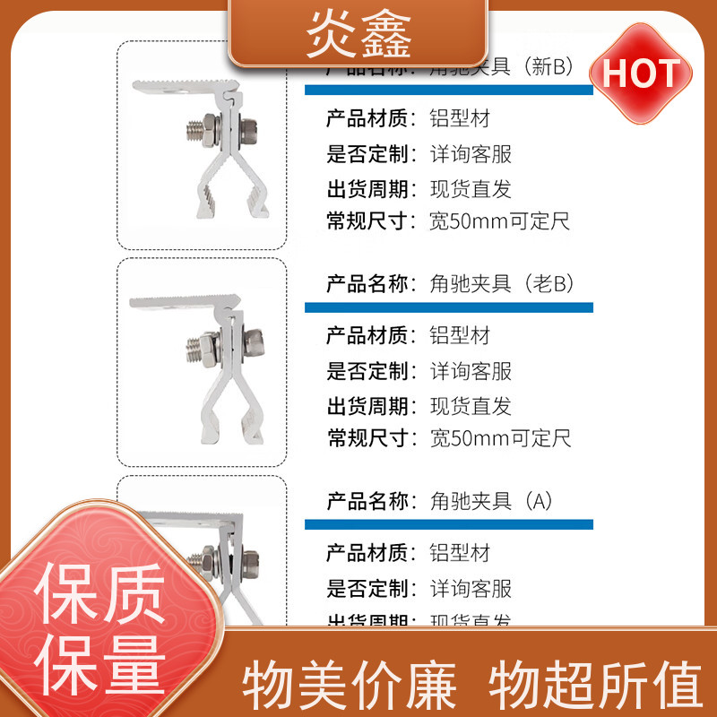防腐优选 炎鑫彩钢瓦铝合金角驰夹具(金属支架扣件)屋顶专用304不锈钢材质 抗风抗震