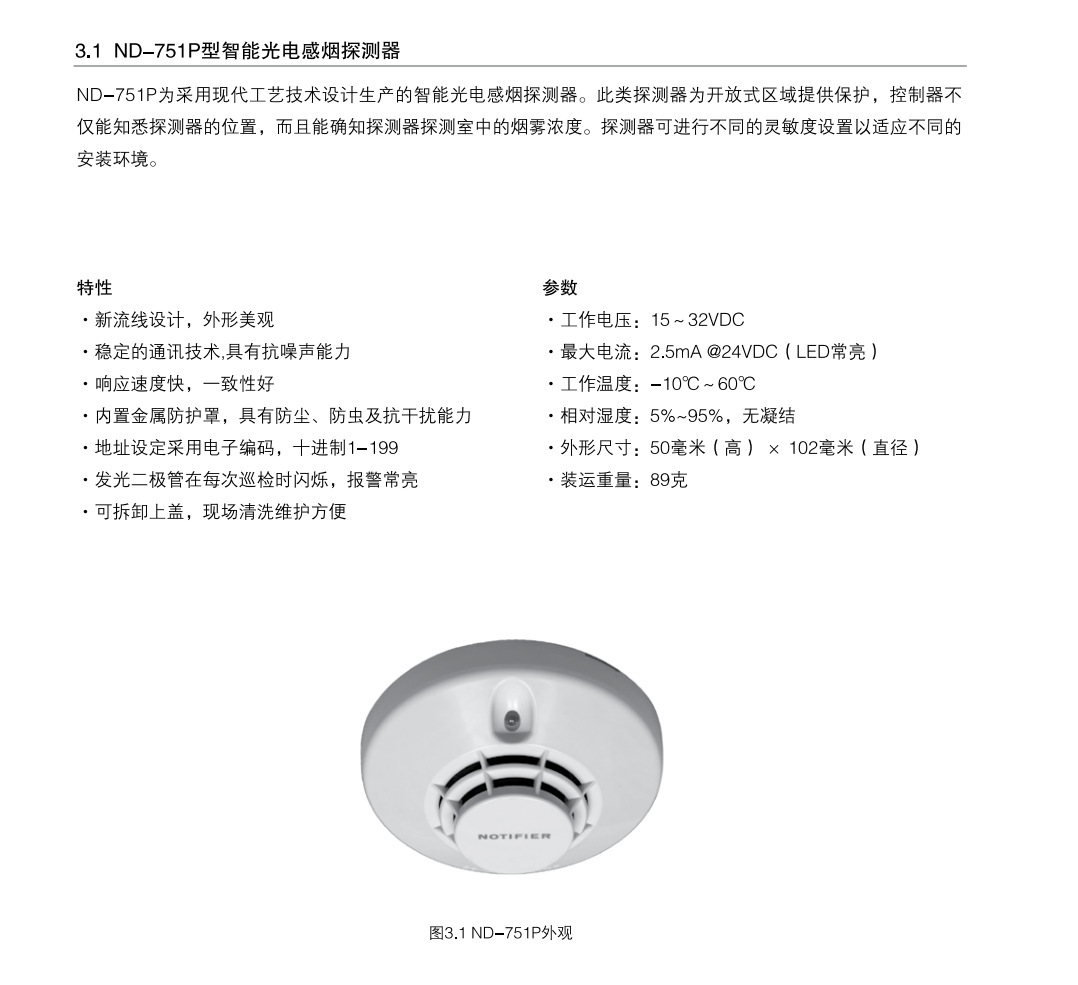 诺帝菲尔ND-751P型智能光电感烟探测器概述:
