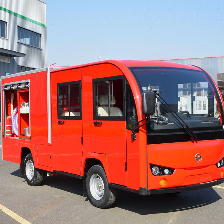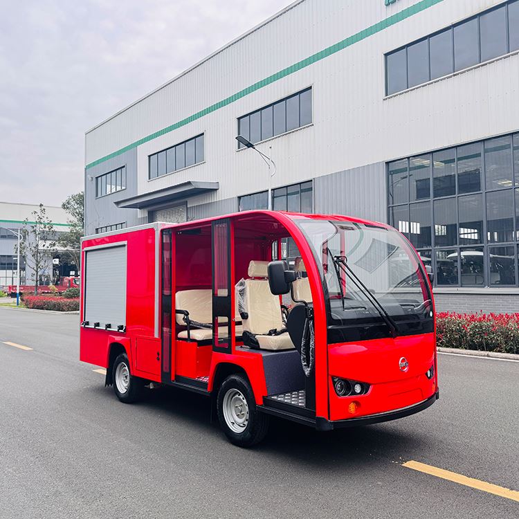 电动微型消防车一般配备有基本的消防器材,如灭火器、消防水带、水枪等,有些还可能配备小型消防泵和水箱,以满足初期灭火的需求。其维护成本相对较低,使用成本也较为经济。