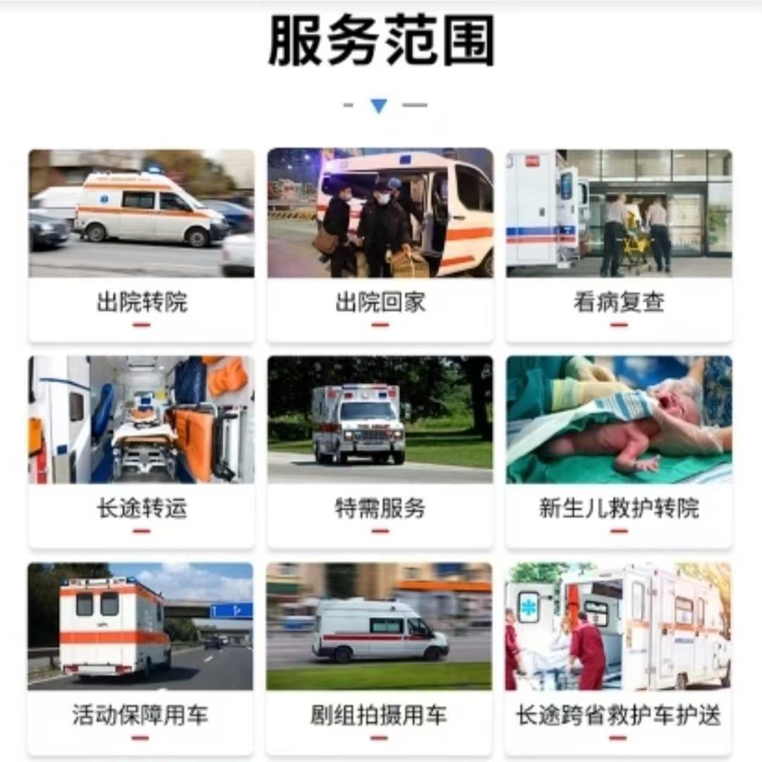 1、长途跨省病人护送:熟悉各大情况,保证规定时间内接到病人。每辆车配备1-2名司机,全程高速,更快时间送达目的地。配备随车医护人员,救护车上全自动无创呼吸机、制氧机、高级心电监护仪、负压吸引器等设备一应俱全。
