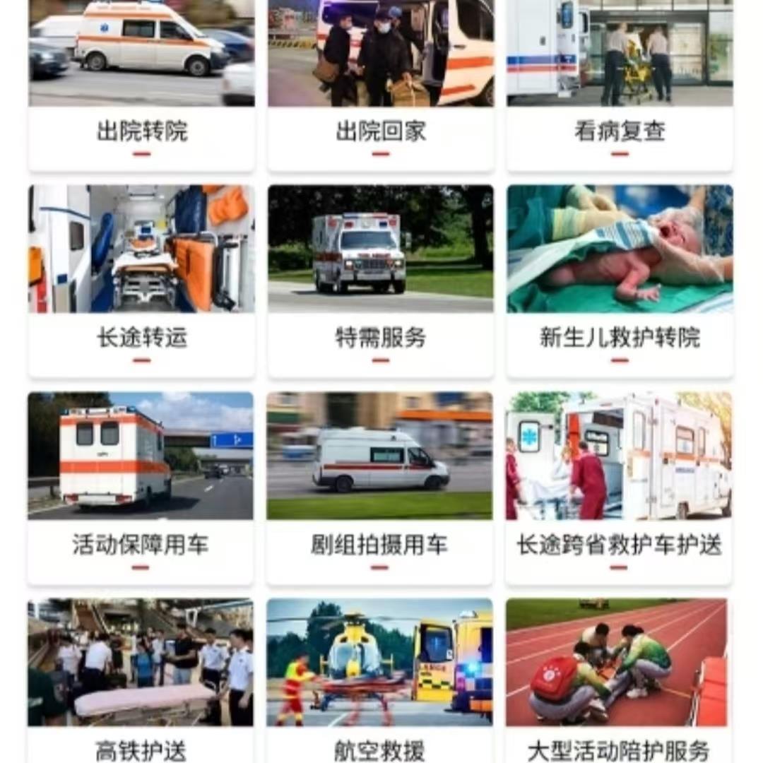全国建立完善的运营中心,承接救护车出租,长短途护,大型活动保障(、跑步、徒步、攀岩、赛车等各项活动),剧组拍摄,会议会展,航空转运,高铁转运。全国可接。优的价格给您,24小时随叫随到