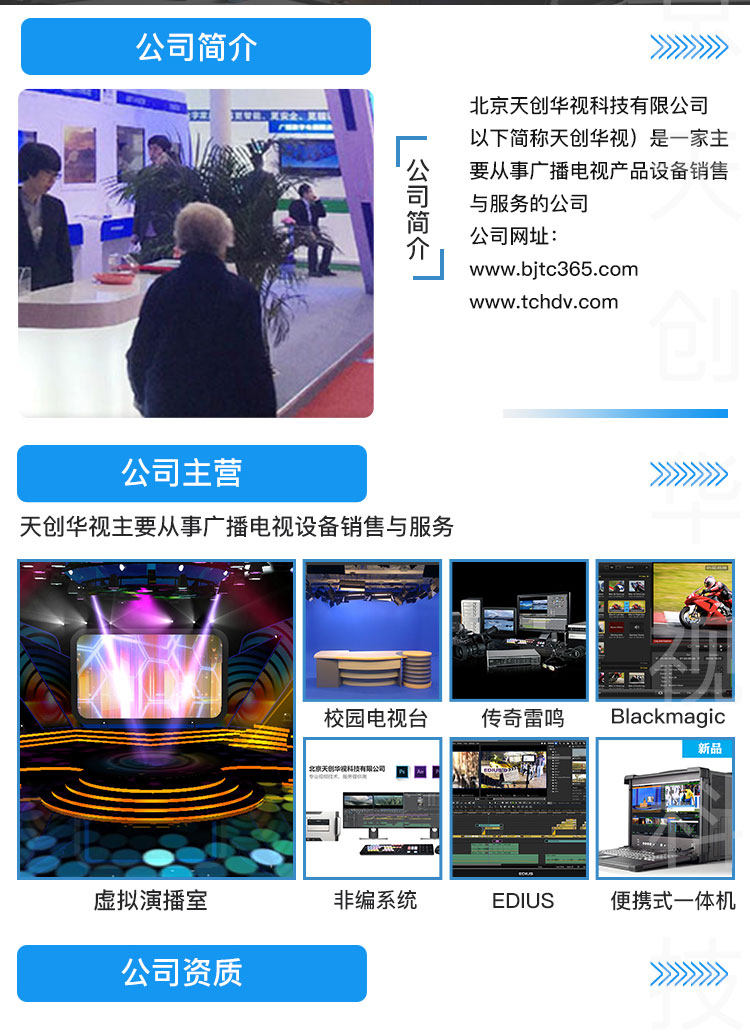 天创华视TC VIEW80L网络直播一体机采编录播一体机(简称移动演播室设备),是集多机位切换、延时、调音、演示、CG字幕、监视、高清录播、高清直播为一体,面向新闻媒体、学校教育、政企单位等拍摄场所不固定的需求,实现十分钟轻松搭建广播级演播室。它无需额外配置切换台、调音台、录像机、编码器等设备,告别传统直播录播产品价格高昂、携带不便、维护繁杂、灵活性低、功能局限等缺陷,不但可以进行异地远程多机位、多素材通道和音频的控制及处理,而且支持输出4K、1080P、720P等超高清和高清视频格式。