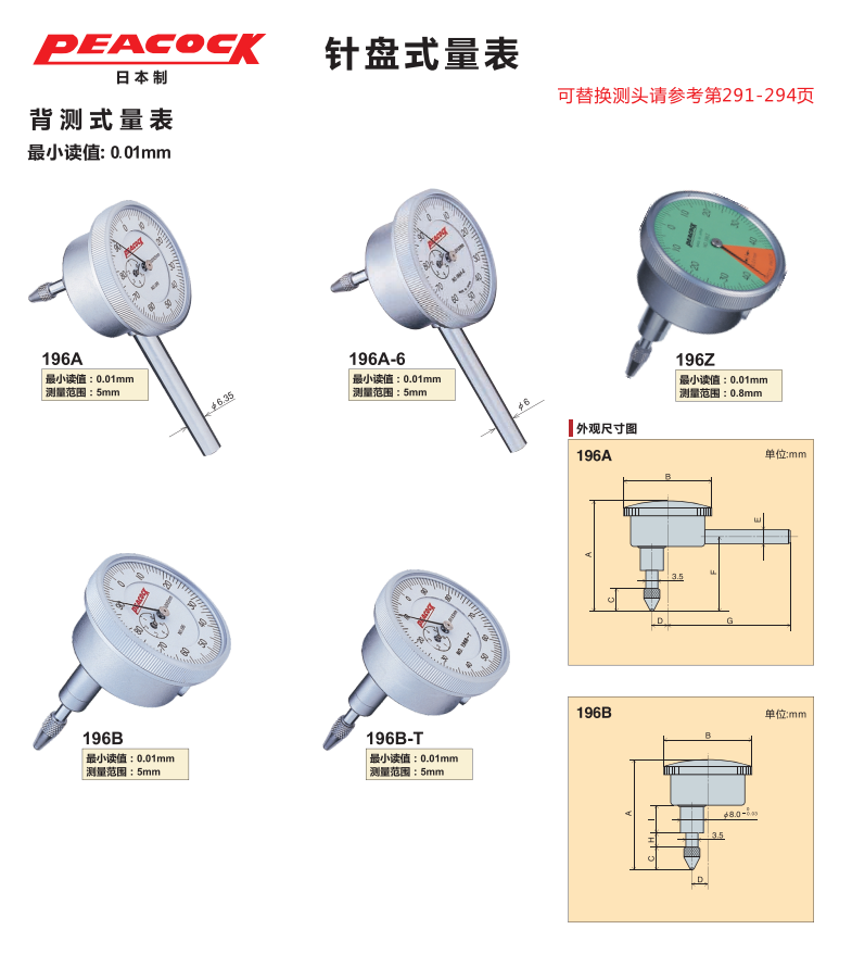 Peacock背测型针盘式百分表196A-6