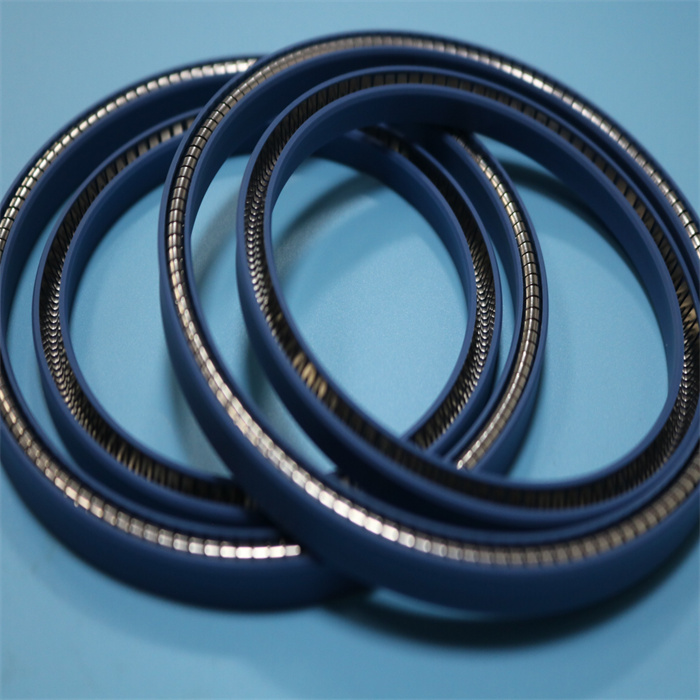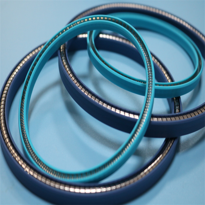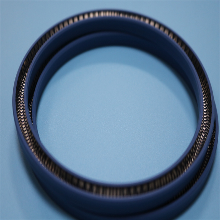 泛塞圈内部的弹簧主要有圆形、V形和椭圆形3种,泛塞密封圈,其材料可由AISI301、Elgiloy、Inconel718、HastelloyC276等合金钢制成。圆形弹簧也称螺旋弹簧,用扁平钢条旋绕而成,能提供比其他弹簧更大的载荷,但变形范围较小。因此,圆形弹簧适合用于气体介质和低温介质。V形弹簧的工作原理类似“悬臂梁”,使得弹簧提供的载荷集中在密封唇的前缘,这种弹簧具有中等负载和变形范围,应用较广泛。另外,当有反向介质压力时,弹簧的开口处被介质压力压缩,会产生“泄压”功能。椭圆形弹簧由圆形钢丝旋绕成倾斜线圈而成,在很宽的变形范围内能提供相对恒定的载荷,使得密封件不会过度变形而损坏。因此,椭圆形弹簧可以应用于封闭式沟槽设计。