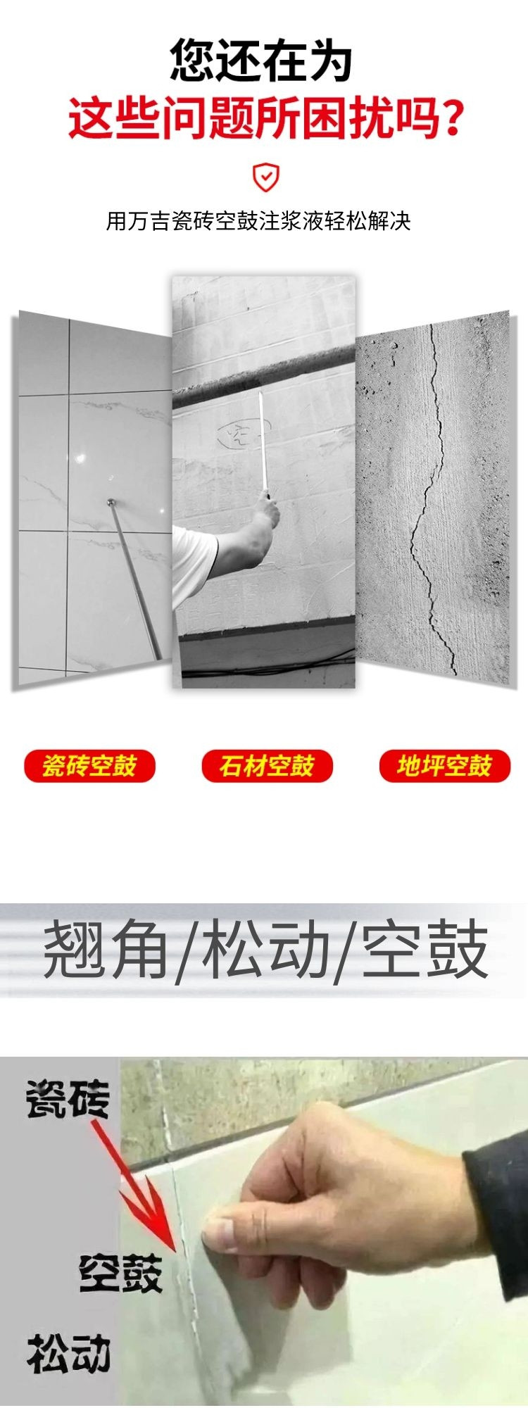 万吉瓷砖空鼓注浆液 墙面地砖石材翘角松动修复注浆料