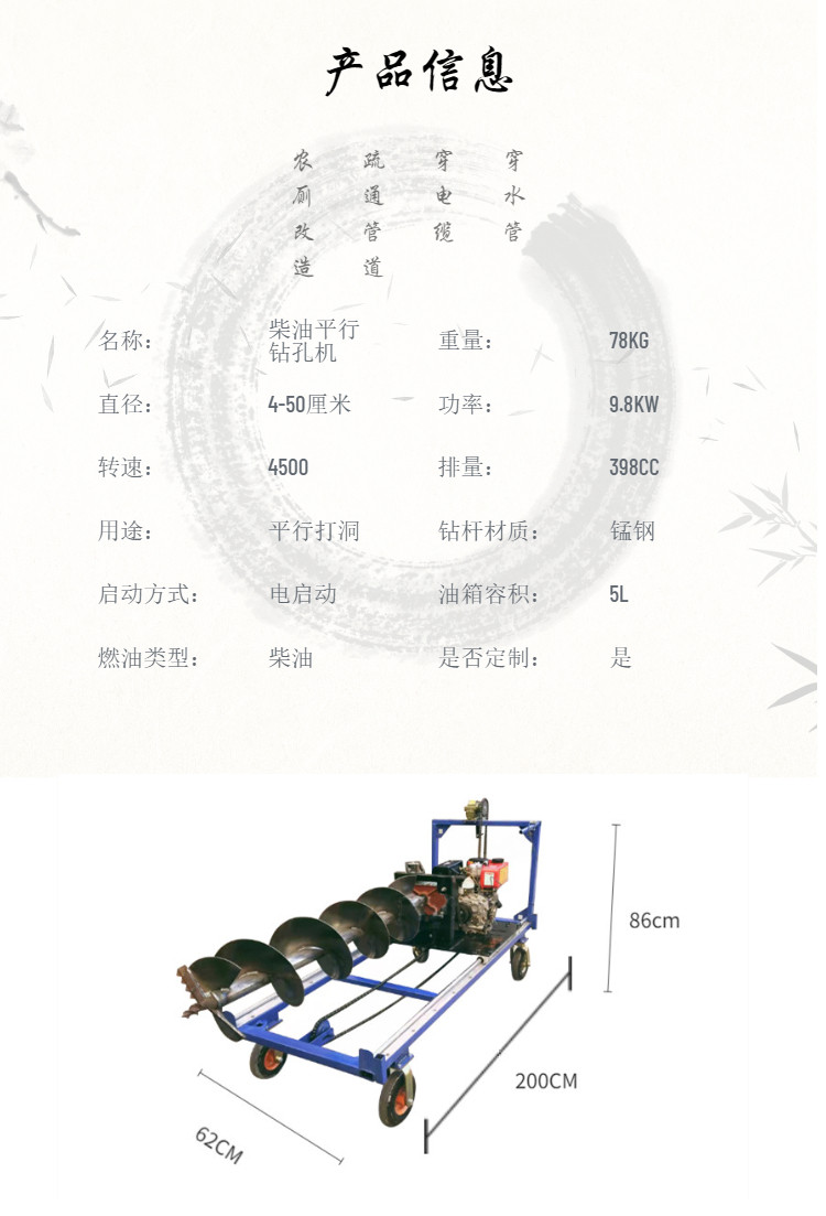 横向打洞机 水平定向钻孔机 大功率打洞钻孔宸瑞达定制