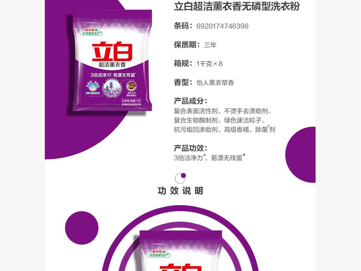 立白超洁薰衣香无磷型洗衣粉 抗污垢回渗 三倍洁净 1kg