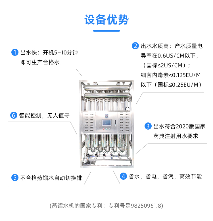 注射用水选型列管多效蒸馏水机鑫冠宇电导率达标