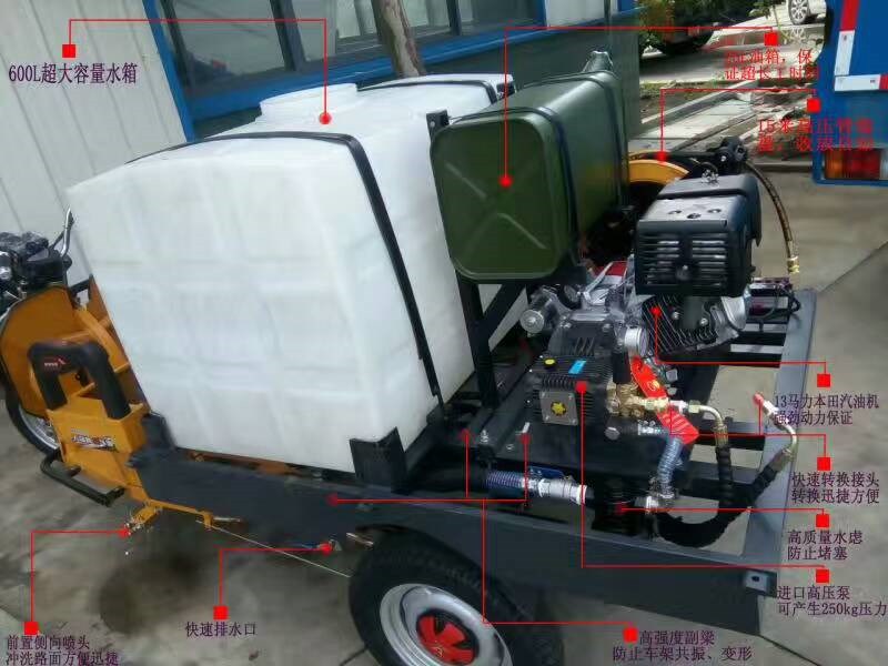 600升塑料水箱 可冲洗40分钟 ,本田汽油机搭配德国高压泵压力达到250bar