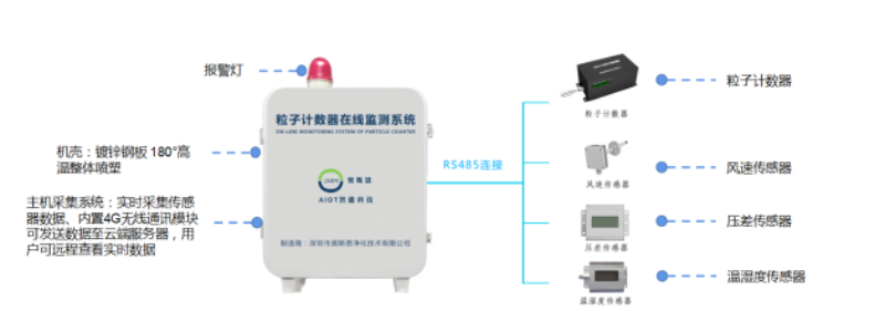 5.报警功能:当检测到的粒子浓度超过预设的安全阈值时,系统会发出声光报警信号,提醒操作人员采取措施降低污染水平。