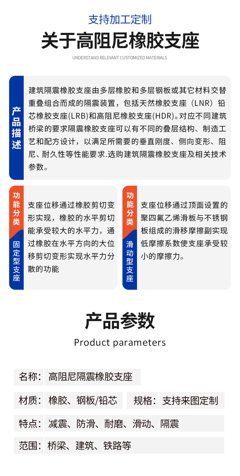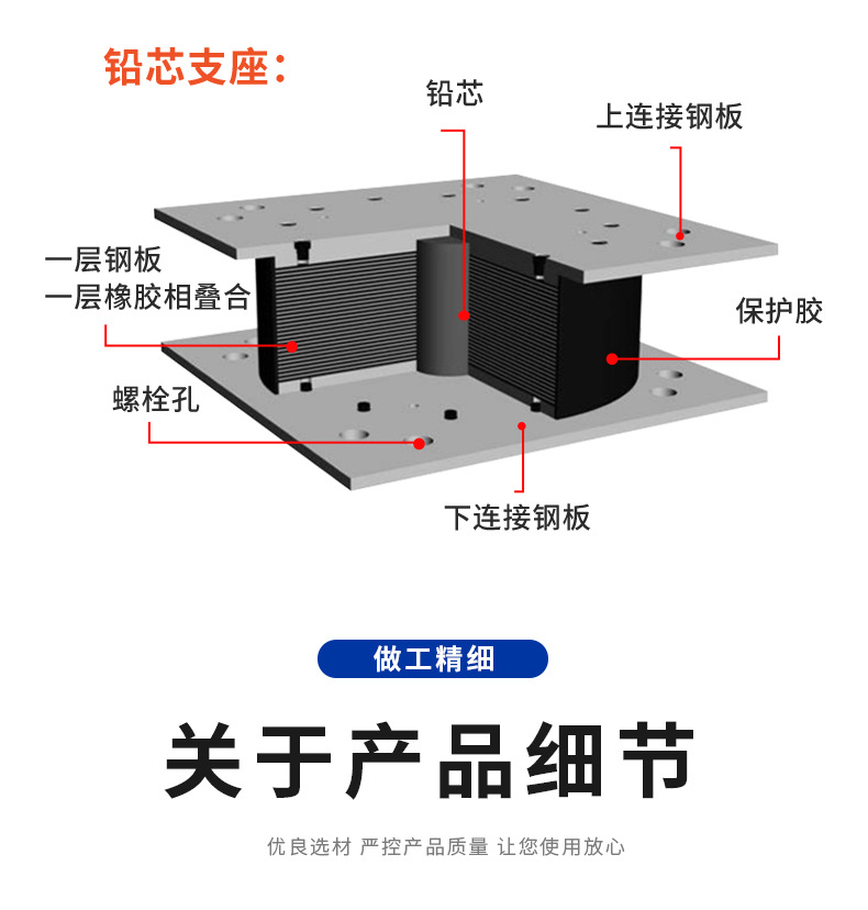 隔震支座是指结构为达到隔震要求而设置的支承装置,是在上部结构与地基之间增加隔震层,安装橡胶隔震支座,起到与地面的软连接,通过这样的技术,可以把地震80%左右的能量抵消掉。例如叠层橡胶支座(或称隔震橡胶支座、夹层橡胶垫等)。它是一种水平刚度较小而竖向刚度较大的结构构件,可承受大的水平变形,可作为承重体系的一部分。这样的抗震技术来源于发动机的研发。