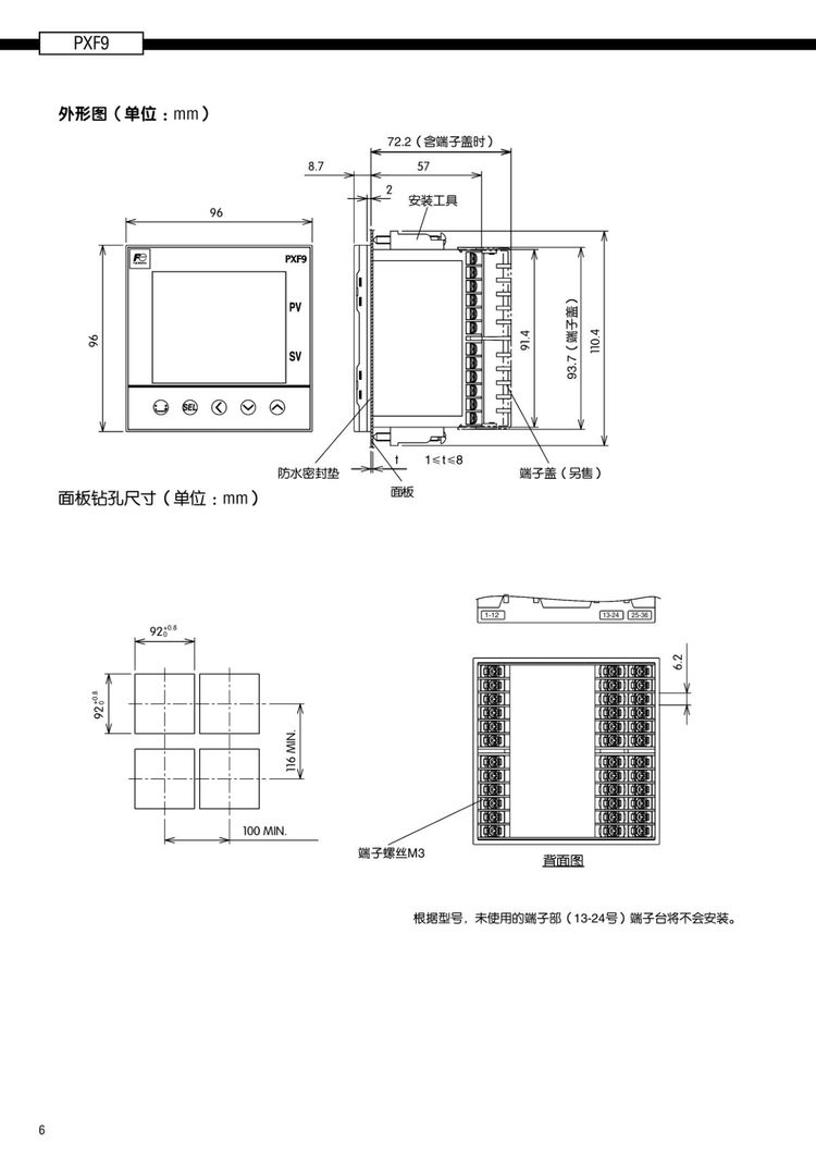 日本富士温控仪PXF,为了对应装置小型化,提供了超小型尺寸 (面板纵深58mm)