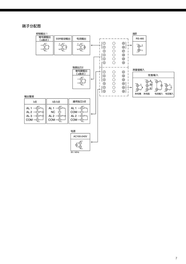 输出配置: *多5个输出,其中*多2个控制输出,*多3个报警输出。