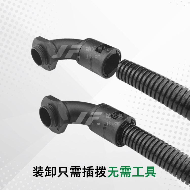 【阻燃软管快速弯接头】 JF结发 塑料接头 防水接头 软管接头 尼龙接头 波纹管接头 连接件 圆角弯接头 稳固拉抗 经久耐用 防腐蚀 便携安装 可拆卸 线束固定 耐高温 离火自熄