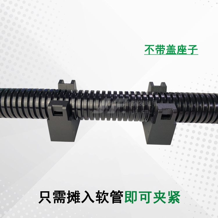 特性:快速而简便的安装方式,仅需按入波纹软管即可夹紧内部槽状结构使软管在纵向不可移动,而轴向仍可自由旋转节省空间,安全牢固
