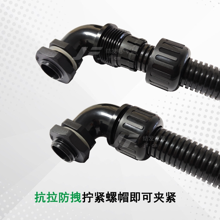 【软管抗拉弯接头】 JF结发 塑料接头 抗拉接头 软管接头 尼龙接头 波纹管接头 连接件 圆角弯接头 稳固拉抗 经久耐用 防腐蚀 便携安装 可拆卸 线束固定 夹紧式设计