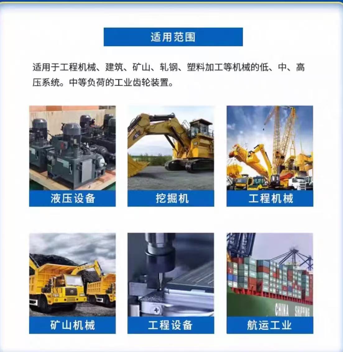 1. 优异抗磨性:有效减少液压泵、阀组等部件磨损,延长设备使用寿命,满足中高压系统的极压润滑需求。
