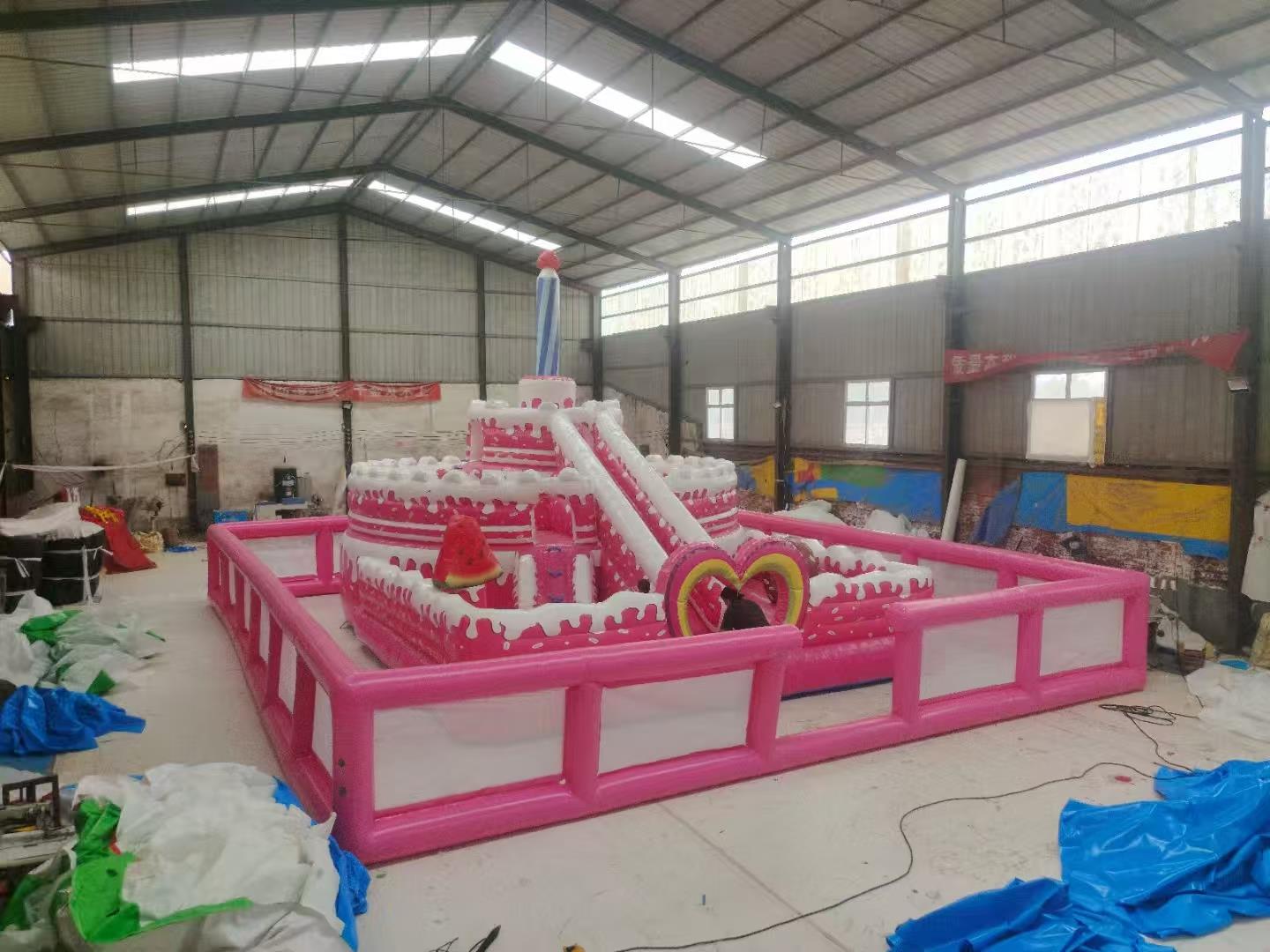 充气城堡由底垫、平台、台阶、斜坡、隧道、缓冲区域、围墙(护栏)等。