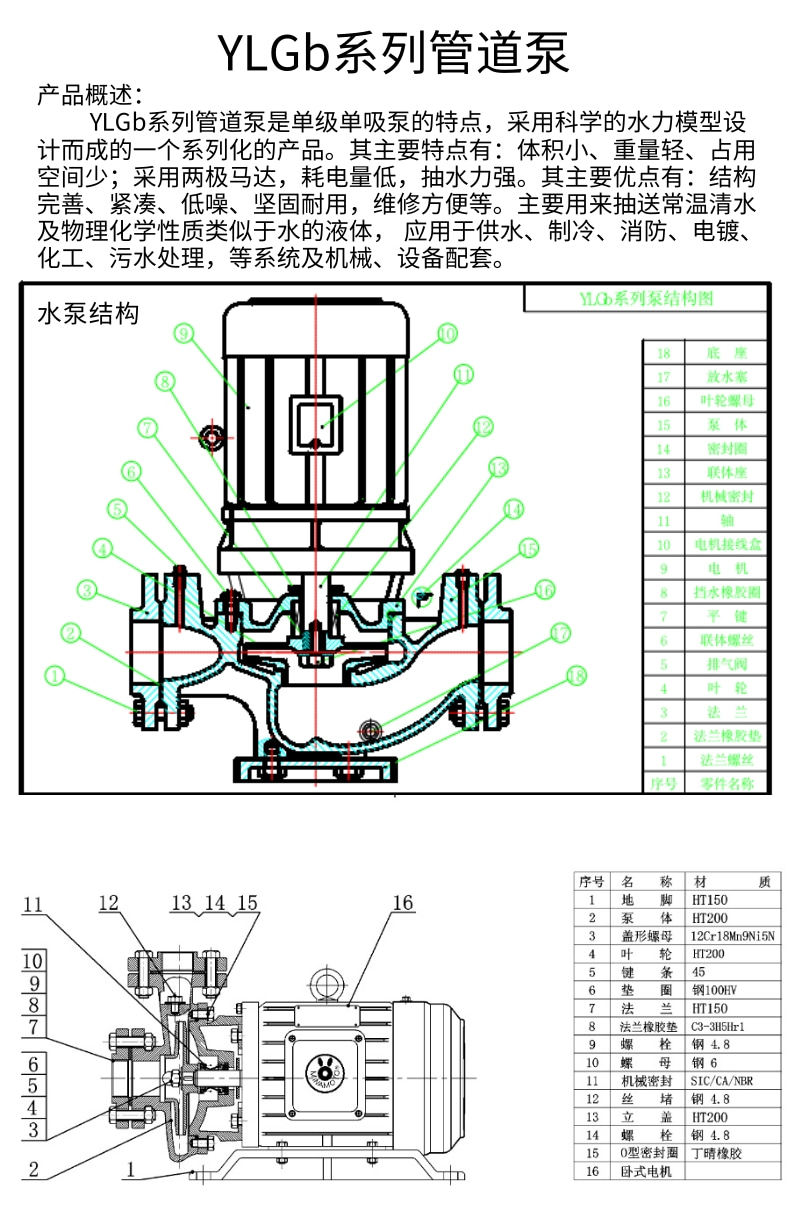 YLGB50-18沃德立式铸铁管道泵2HP/1.5KW高楼供水泵电动高温热水泵