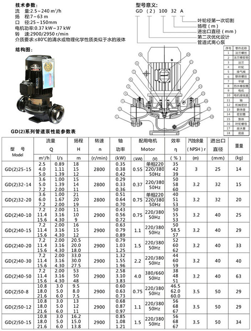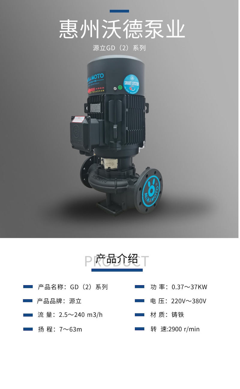 源立离心泵GD(2)100-50A冷却塔循环泵 管道增压泵\铸铁空调泵