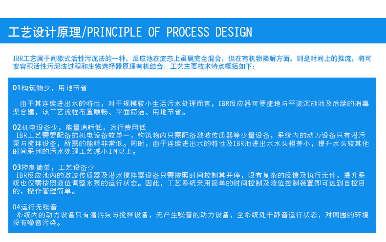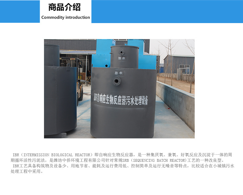 IBR工艺一体化污水处理设备是我厂针对小水量农村生活污水处理设计的小型一体化污水处理设备,此设备针对小水量(每天4吨以下)生活污水处理,出水达到国标一级B出水,此设备的优点是设备价格低,运行功率低,后期维护费用少,操作简单。