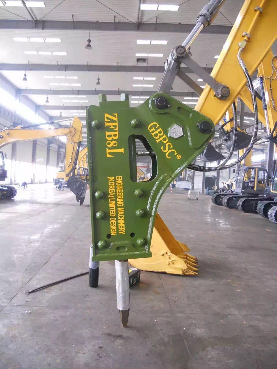 该型号钢钎直径为138mm,适19—26吨挖掘机装配,全新设计行程加大,活塞增粗,钢钎变细,打击更强劲有力,整机重量不増,操控更灵活。