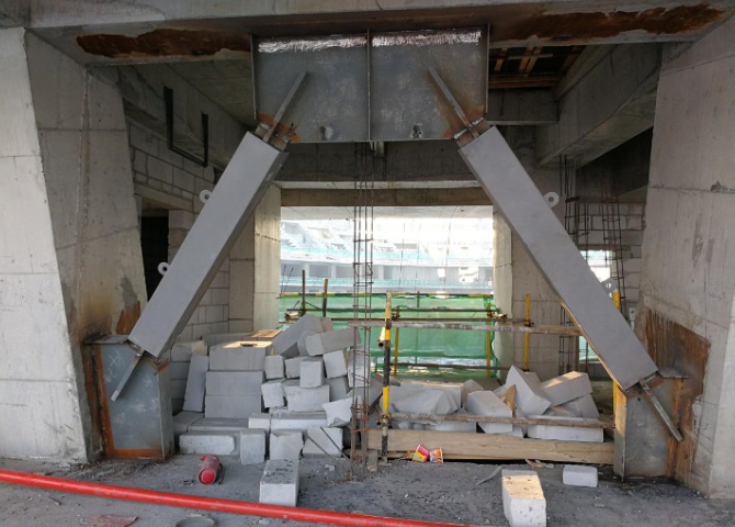 屈曲约束支撑,既能给结构提供小震作用下的附加阻尼比,小震时,屈曲约束支撑仍处于弹性状态,具有足够侧向刚度保障结构满足使用要求,当发生中、强地震时,随着结构侧向变形的增大,屈