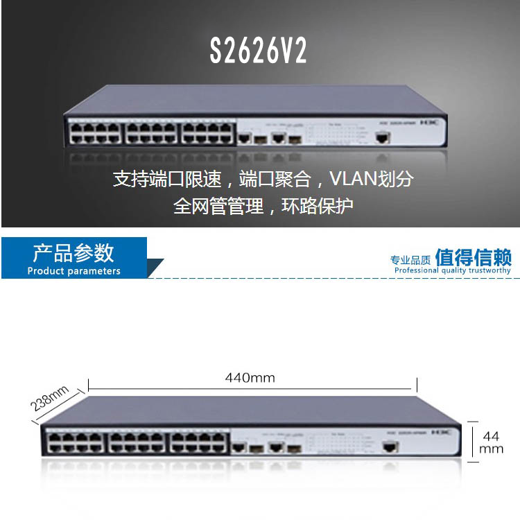 H3C LS-2626V2 华三交S2626V2 24口百兆电+2口千兆光口 二层网管换机