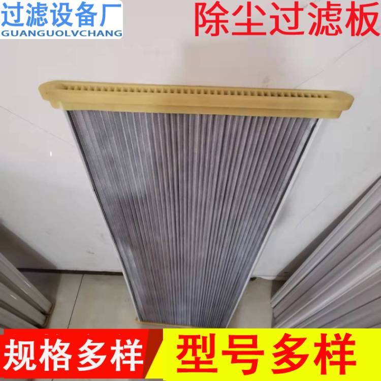 板式除尘滤筒的特点:1.独特的外形及内部强大的支撑滤筒外部形状特点是具有象手风琴那样的波浪形,若把它们展开成一个平面,相当于扩大了4倍的表面积.强大的内支撑使滤筒刚性结构强.2