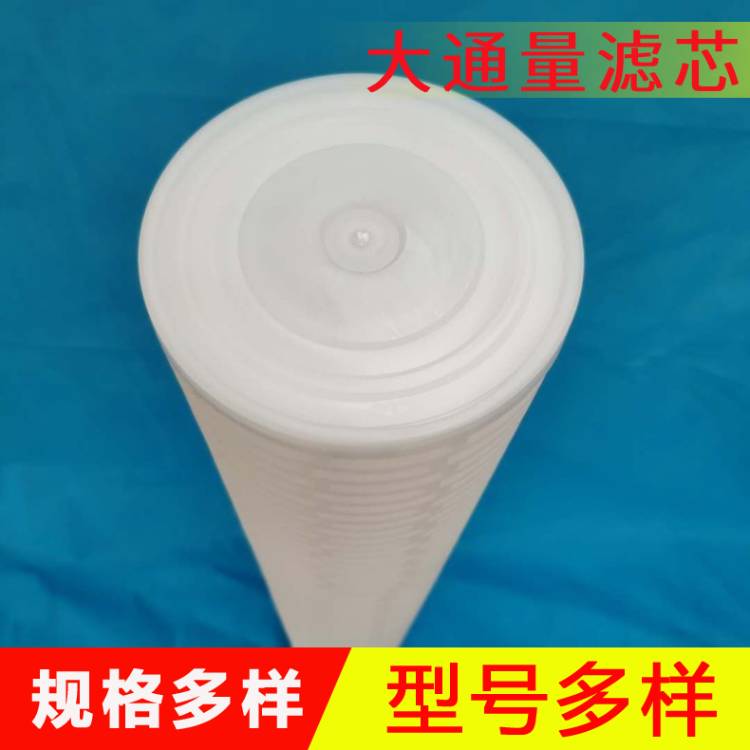 大流量滤芯又称大流量水滤芯、大流量滤元、大通量滤芯、大流量折叠滤芯等,通常采用PP材质的内外骨架,滤层由保护网、无纺布、过滤膜等多种材质组成,可适应绝大多数水处理的工况.