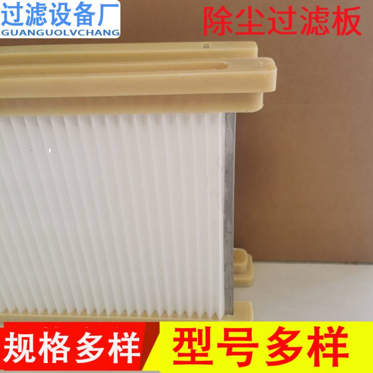 板式除尘滤筒的特点:1.独特的外形及内部强大的支撑滤筒外部形状特点是具有象手风琴那样的波浪形,若把它们展开成一个平面,相当于扩大了4倍的表面积.强大的内支撑使滤筒刚性结构强.2