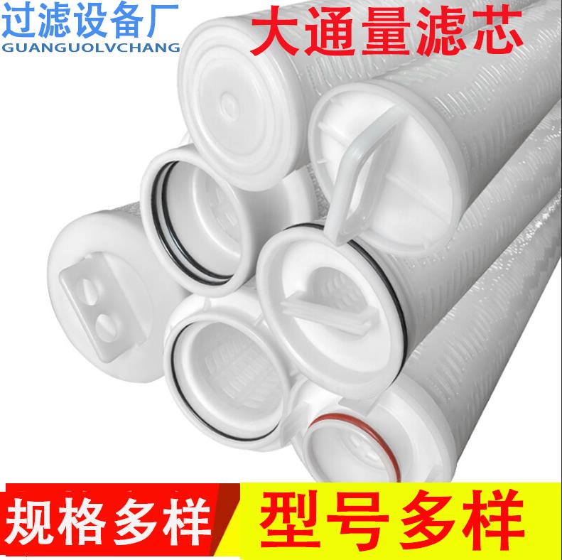 大流量滤芯又称大流量水滤芯、大流量滤元、大通量滤芯、大流量折叠滤芯等,通常采用PP材质的内外骨架,滤层由保护网、无纺布、过滤膜等多种材质组成,可适应绝大多数水处理的工况.